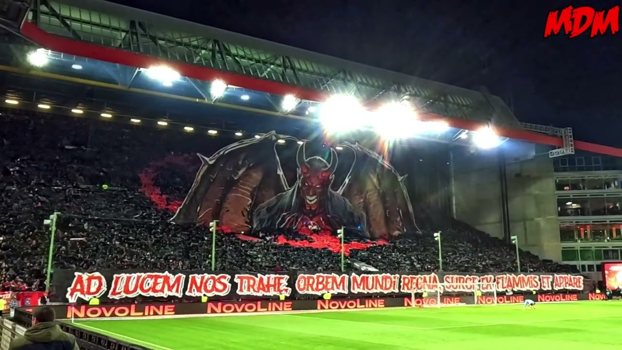 Was war passiert? Aus der zunächst von Fans mittels Folien in Schwarz gefärbten Westkurve taucht zunächst ein rotes Pentagramm auf, dazu der lateinische Spruch: „Exaudi Nos, Lucifer, Et Surge Ex Abysso, Sume Animas Nostras“, was übersetzt bedeutet: „Erhöre uns, Luzifer, und erhebe dich aus dem Abgrund, nimm unsere Seelen.“ Dann