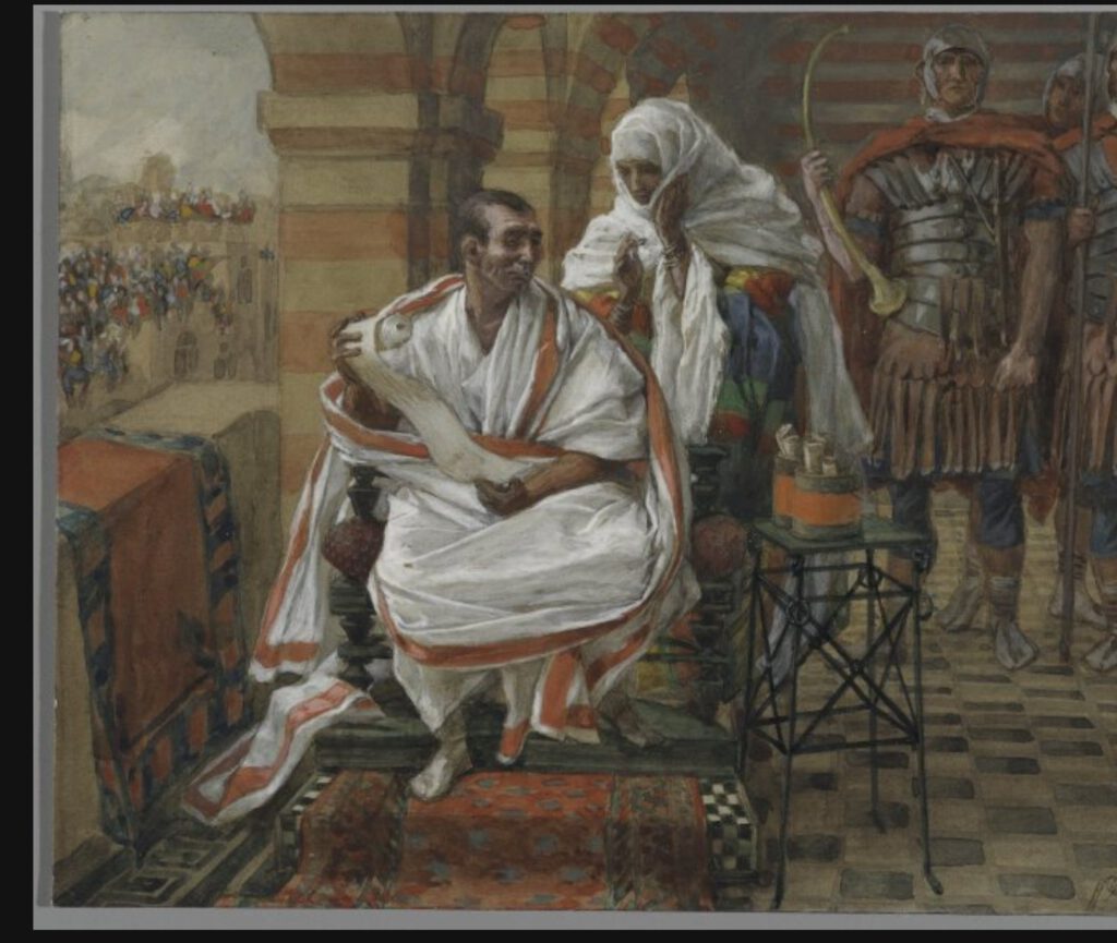 „Und während er auf dem Richterstuhl saß, sandte ihm seine Frau die Botschaft: ‘Habe nichts zu schaffen mit diesem gerechten Menschen; denn ich habe heute viel gelitten im Traum um- seineswillen.’“ (Matthäus 27,19, übersetzt)