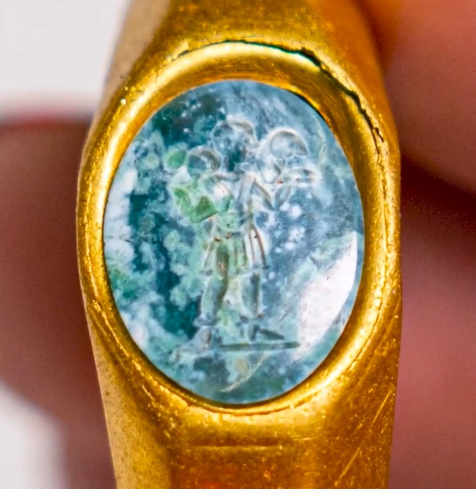 Das ältere Schiff enthält einen Schatz von Goldmünzen. Darin fand sich auch ein Goldring mit einem Stein, auf dem ein Hirte eingraviert ist, der auf den Schultern ein Schaf trägt. Nach Ansicht der israelischen Altertumsbehörde handelt es sich um eine Darstellung von Jesus, dem guten Hirten. Der Ring gehörte offenbar einem wohlhabenden Christen, der seinen Glauben auf diese zurückhaltende und zugleich offensichtliche Weise zeigen wollte.